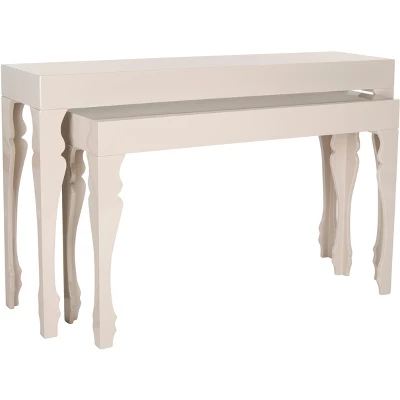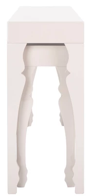 Feminine with a touch of whimsy, the white lacquer Beth console adds a glamorous sparkle to any room. Graceful, curlicue legs are derived from Gustavian style furnishings, but this updated finish makes Beth adaptable to traditional and contemporary rooms. Care Instructions: Dust regularly with a soft, dry cloth. Never use oiled or treated cloths on lacquered finishes. Some finishes can be wiped with a damp (not wet) cloth, followed at once by rubbing with a dry cloth to remove fingerprints and smudges. For persistent spots, gently clean with a soft cloth and a solution of water and mild soap, make sure to wipe dry. Use adhesive felt pads, coasters and placemats to protect your furniture..