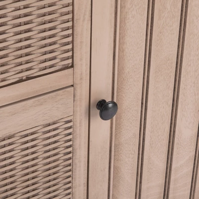 Classically designed to suit any dŽcor, this Landers 2 Door Console brings storage and style to any busy entryway, hall, or living room. LandersÕ clean lined frame is given a contemporary farmhouse touch with three natural toned baskets. Care Instructions: